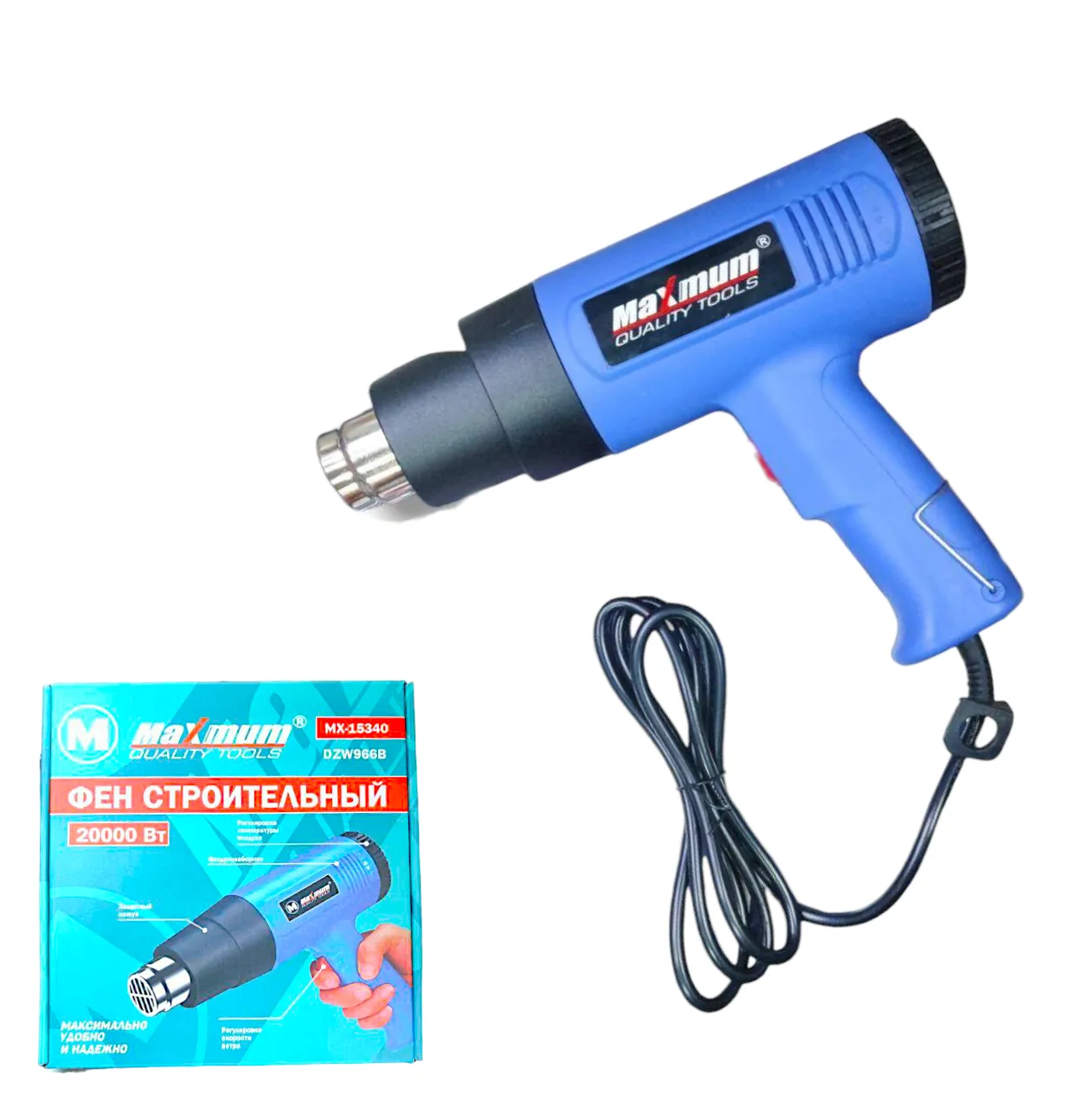 Фен строительный 2000 Вт с регулировкой температуры воздушного потока, "MAXIMUM" MX 15340, модель DZ