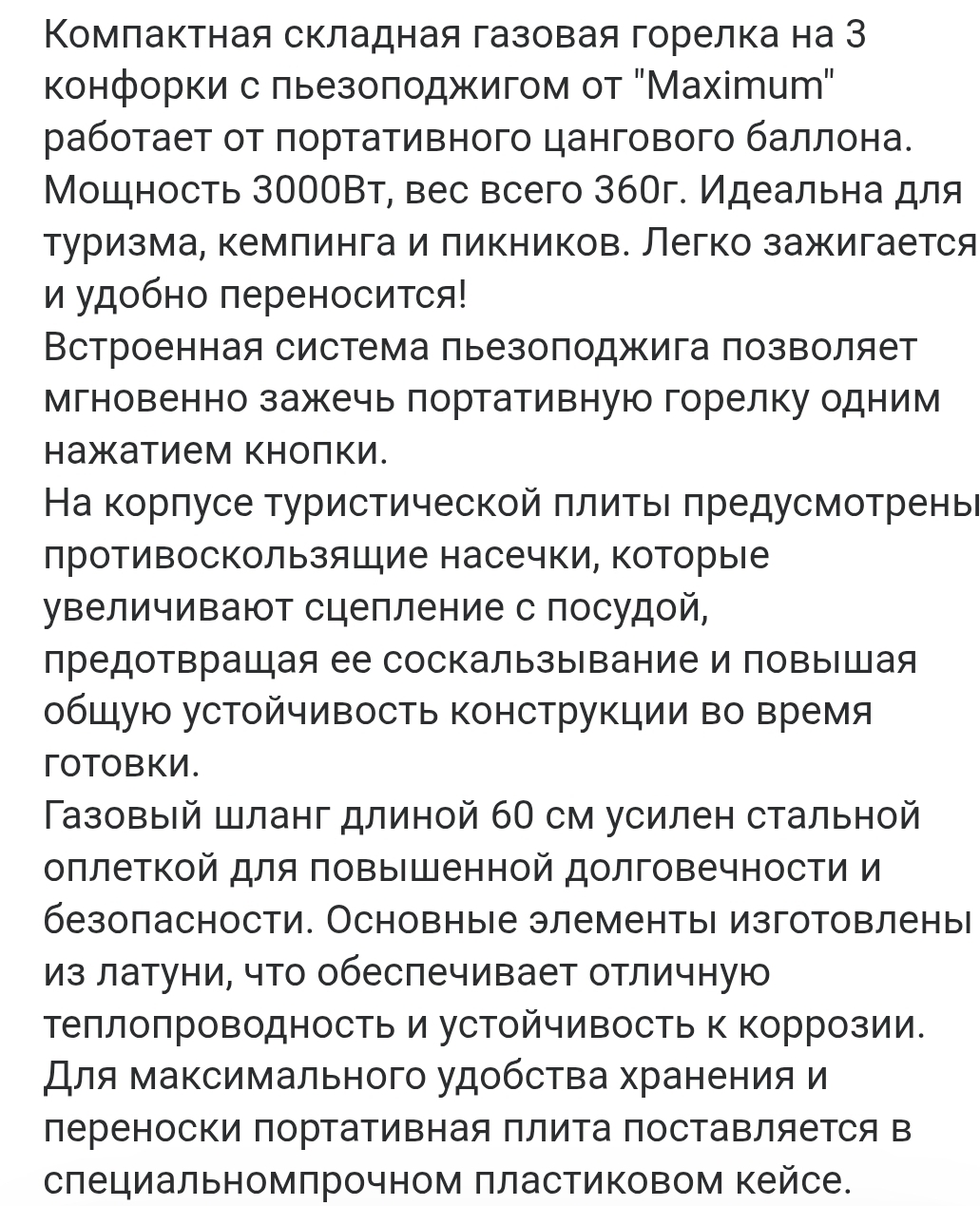 Горелка газовая 920 КЕРАМИКА, с пьезоподжигом, " MAXIMUM" MX 08410 (2054)