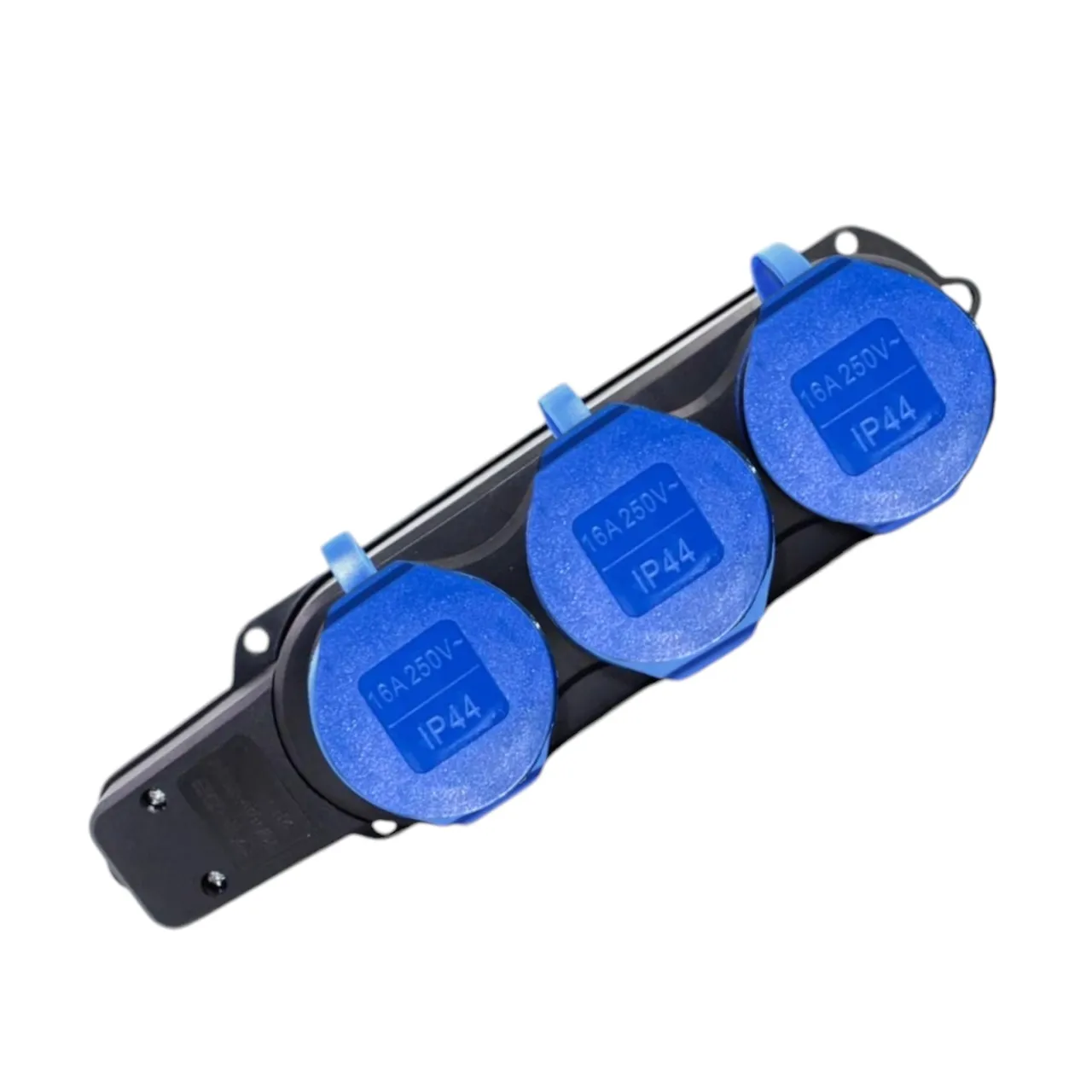 Розетка (колодка) трехместная с защитными крышками каучуковая 250 В 2P 16A обладает высокими электроизоляционными свойствами, износостойкостью, ударопрочностью, а также устойчивостью к температурным колебаниям. Основные сферы применения таких колодок – строительные и производственные площадки, машиностроение, электроснабжение бытовок и киосков, а также использование на даче или приусадебном участке, то есть во всех случаях, когда предъявляются повышенные требования к надежности и защищенности электрического соединения.