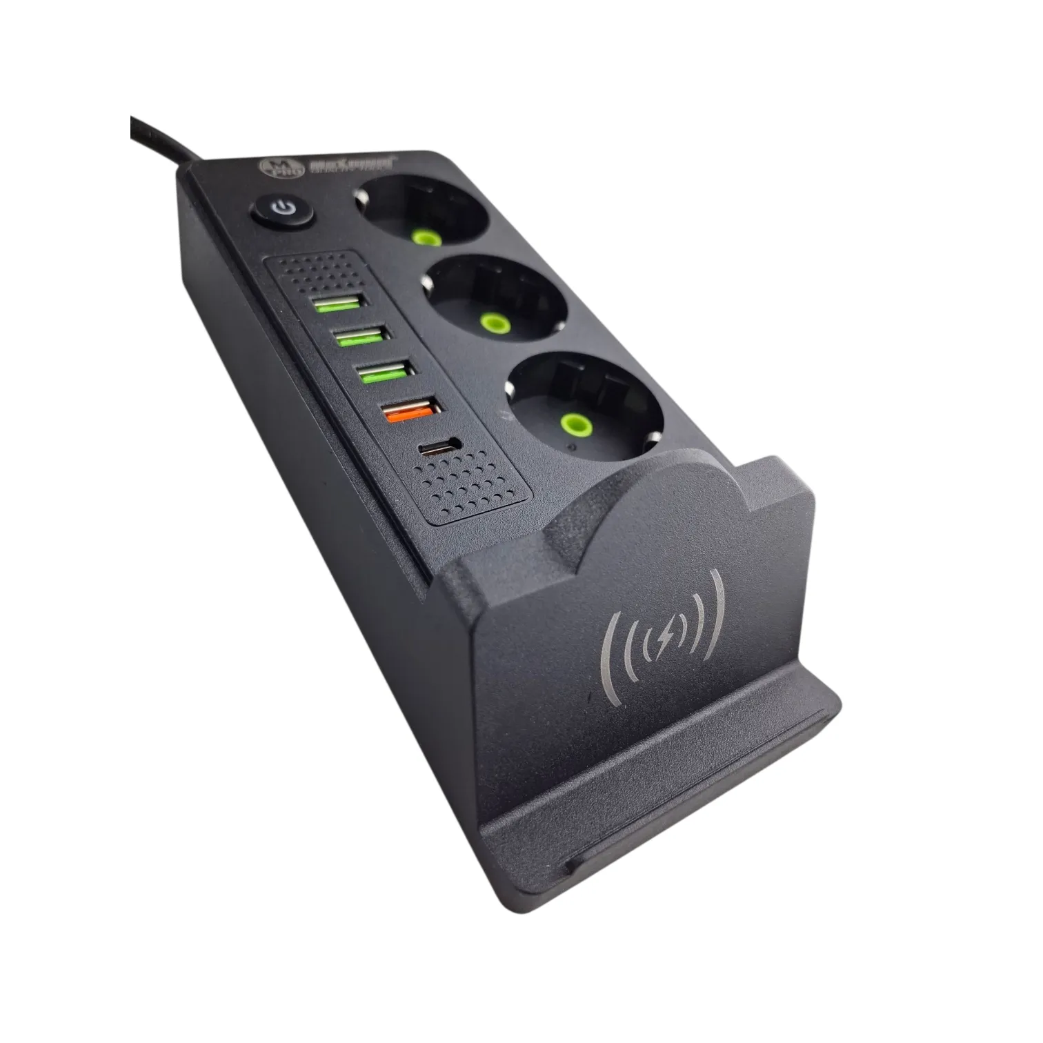 Фильтр сетевой 5 метров с беспроводной зарядкой от "Maximum Quality Tools" - это отличный выбор для тех, кто хочет обеспечить безопасную работу своих электронных устройств. Черный сетевой фильтр оборудован современной беспроводной зарядкой, 3-мя Евро розетками, 4-мя USB портами и 1-м разъемом Type-C, что позволяет быстро и легко заряжать свои устройства без необходимости использовать провода. Удлинитель имеет входное напряжение 220 В и номинальный ток 16 А.