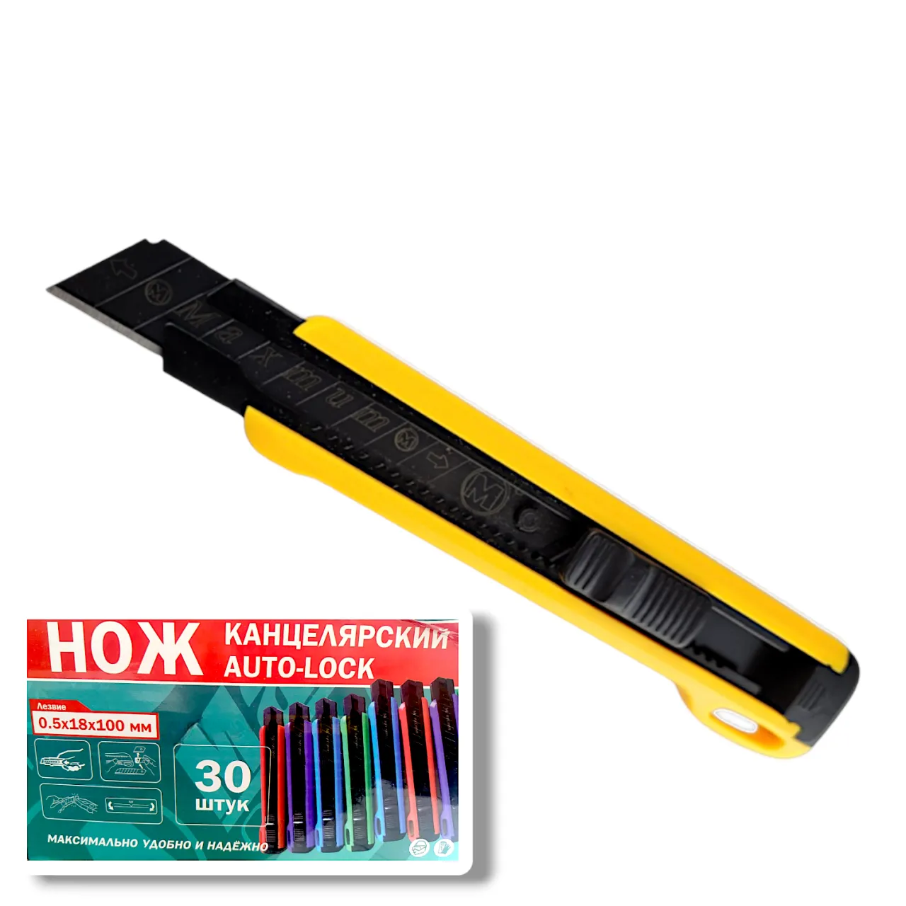 Нож обойный пластиковый с металлической направляющей и автофиксатором от "MAXIMUM QUALITY TOOLS" поставляется с одним черным лезвием 18 мм из стали SK5. Используется нож для обоев, кожи, линолеума, гипсокартонных и гипсолитовых плит, бумаги, картона. Металлическая направляющая усиливает корпус и надежно фиксирует лезвие. Длина инструмента 160 мм. Лезвия для канцелярского ножа изготовлены из качественной черненной стали SK-5, автоматический замок позволяет точно регулировать длину.