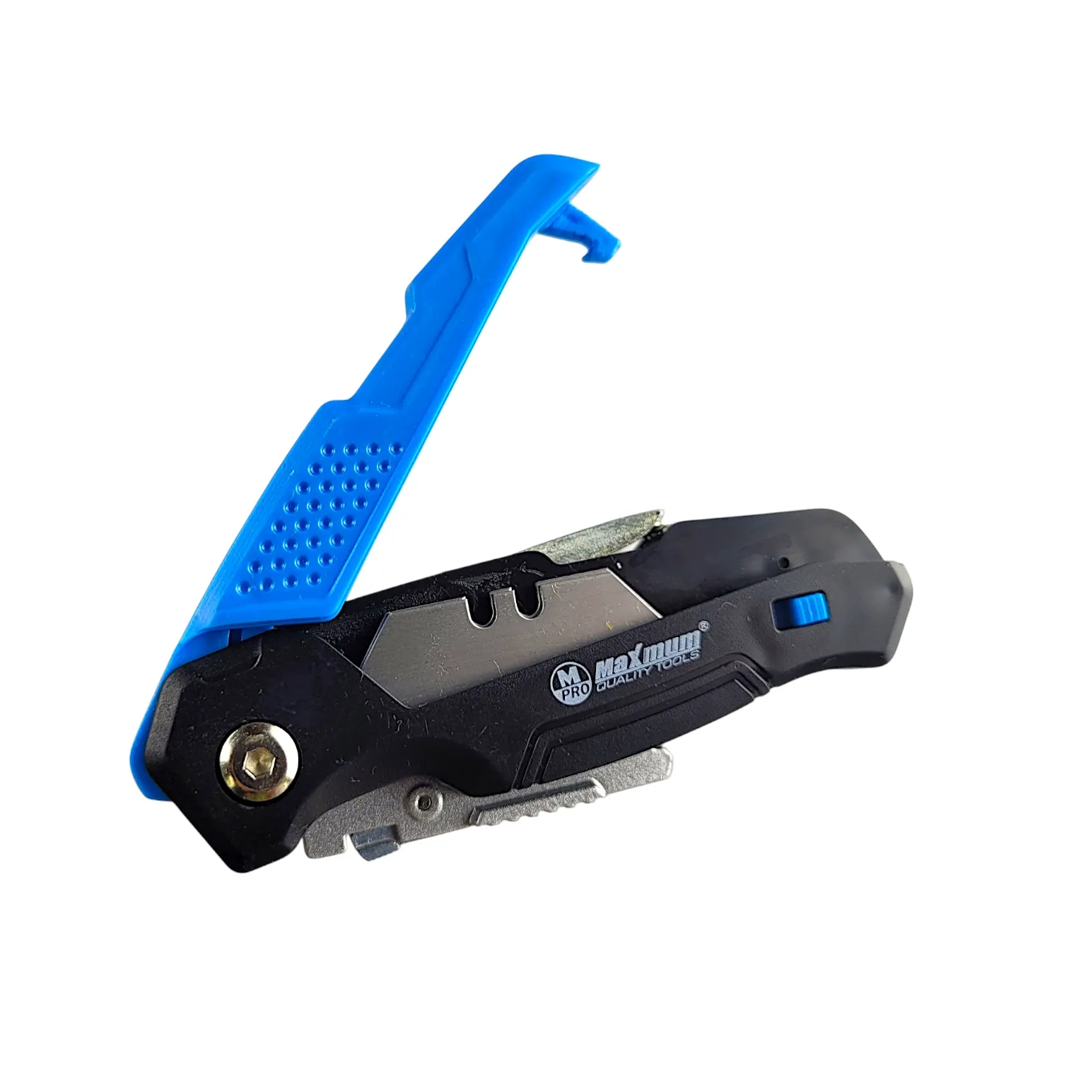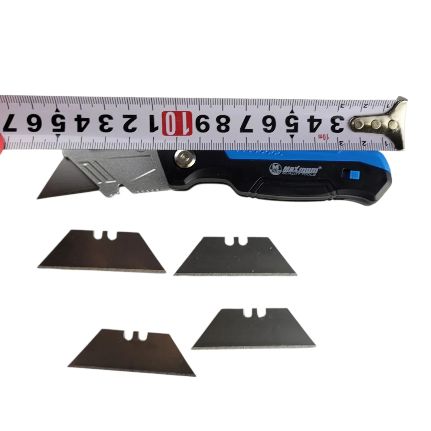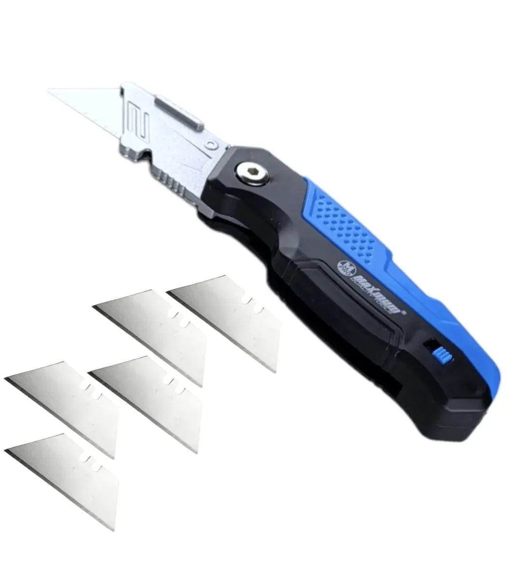 Нож строительный/канцелярский с кнопкой для быстрой смены угла резки и системой Quick Change для быстрой смены лезвий от "Maximum Quality Tools" предназначен для разрезания гипсокартона, бумаги, обоев, картона, ковролина, линолеума и т.п.