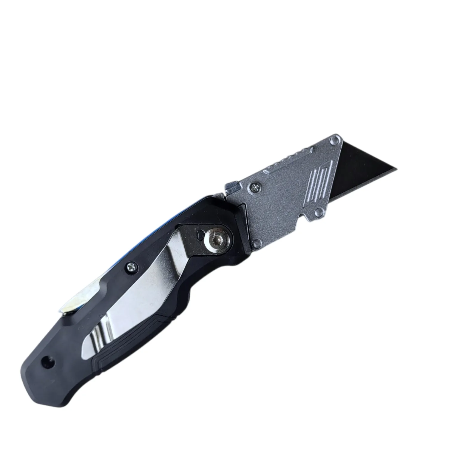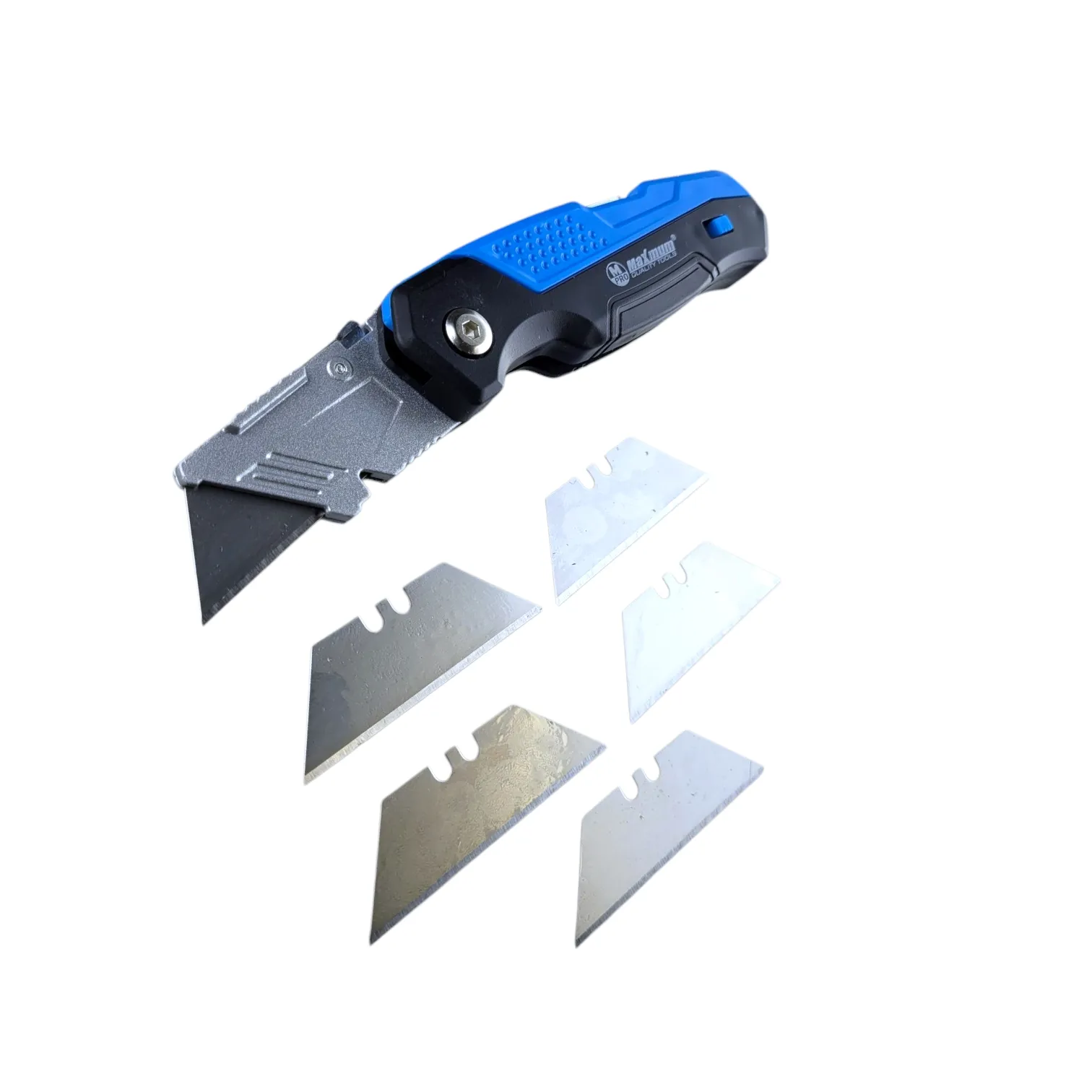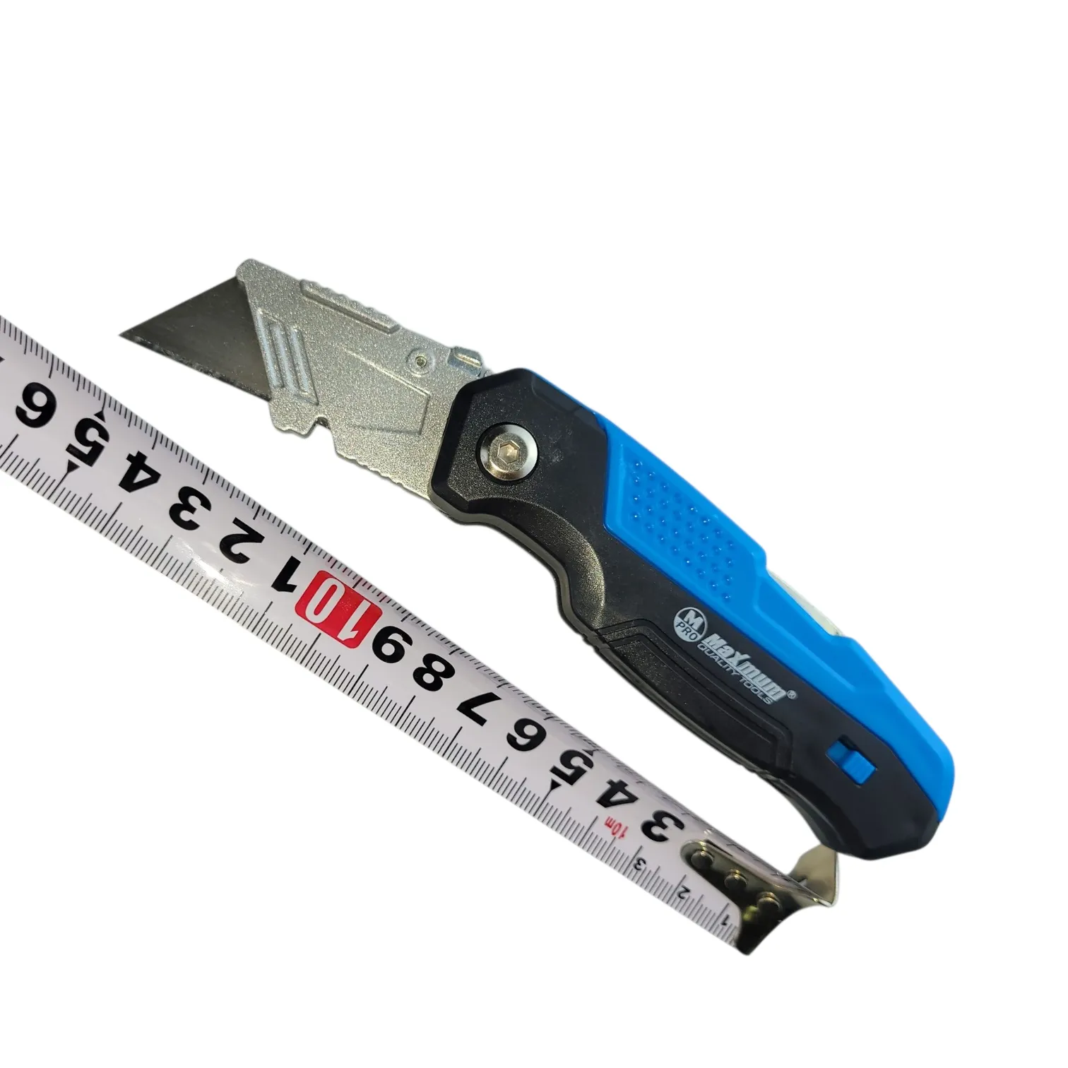 Нож строительный/канцелярский с кнопкой для быстрой смены угла резки и системой Quick Change для быстрой смены лезвий от "Maximum Quality Tools" предназначен для разрезания гипсокартона, бумаги, обоев, картона, ковролина, линолеума и т.п.