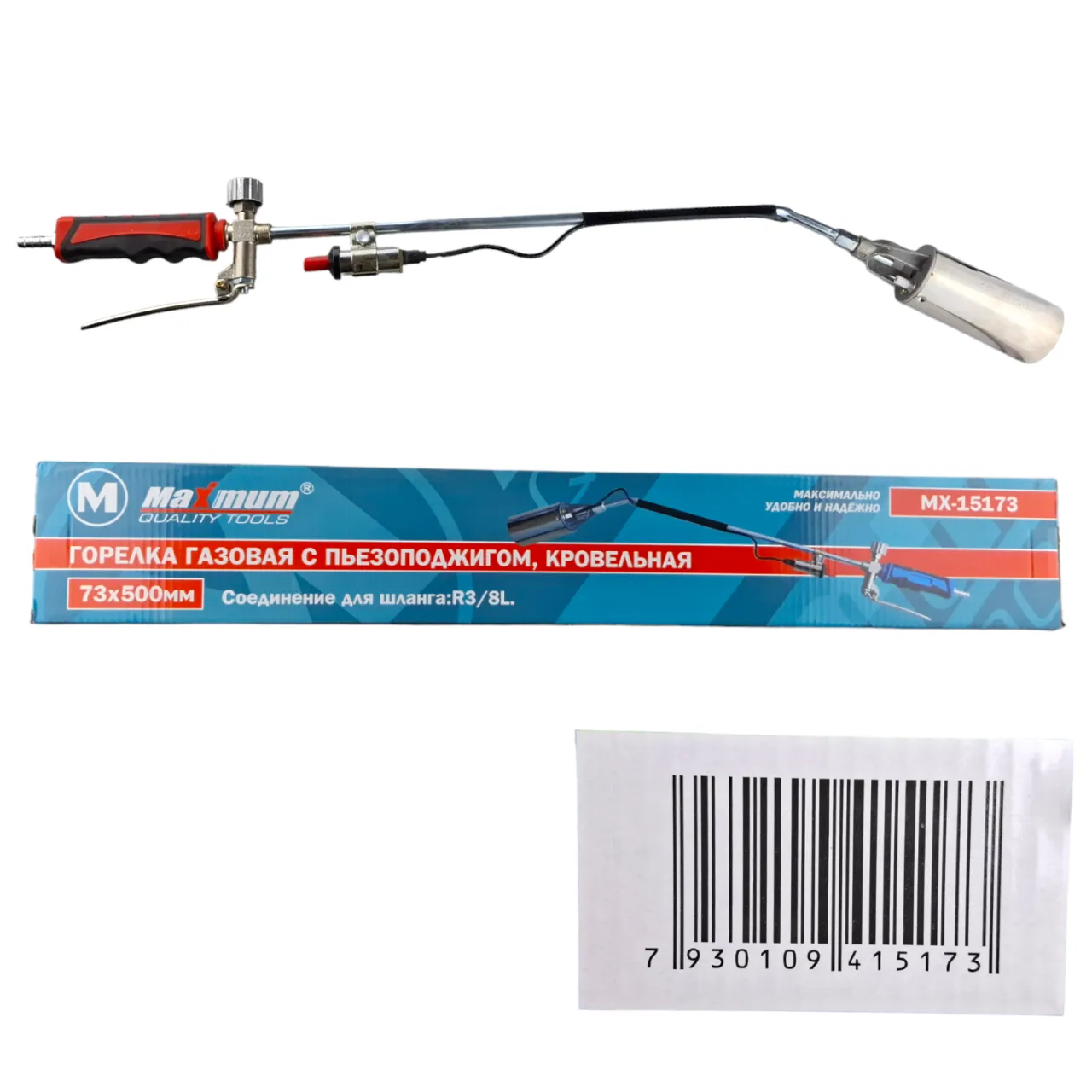 Кровельная горелка с пьезоподжигом имеет сопло диаметром стакана 48 мм от "Maximum Quality Tools" и применяется для сушки литейных форм, расплавления битумного покрытия, пайки и нагрева металлических изделий.