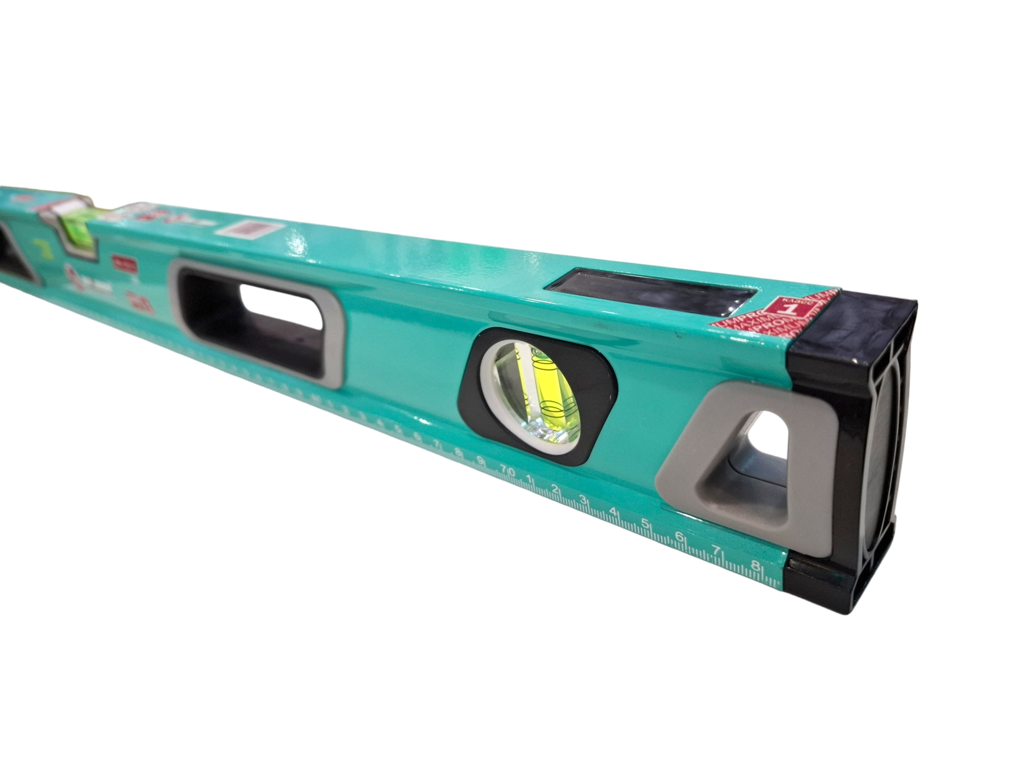 Зеркальный глазок упрощает измерения вертикальных поверхностей. Фрезерованная базовая поверхность хорошо магнитит. Утолщенный профиль 30 мм из алюминия и прорезиненные рукоятки делают работу комфортной.