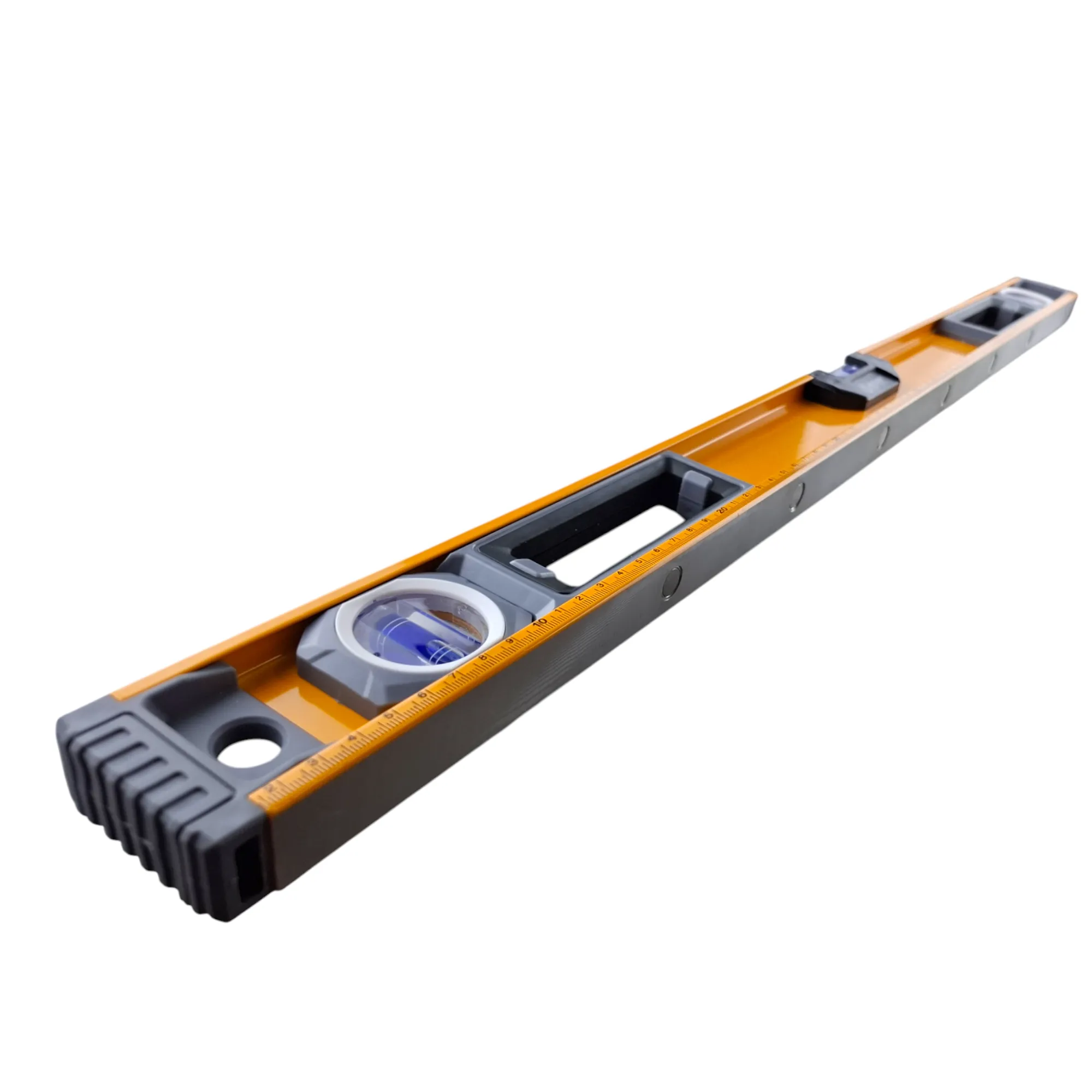 3. Противоударный корпус: Имеет усиленные ребра жесткости и литые торцевые заглушки, которые защищают уровень от случайных падений и механических повреждений. Колбы также установлены в ударопрочные посадочные места.