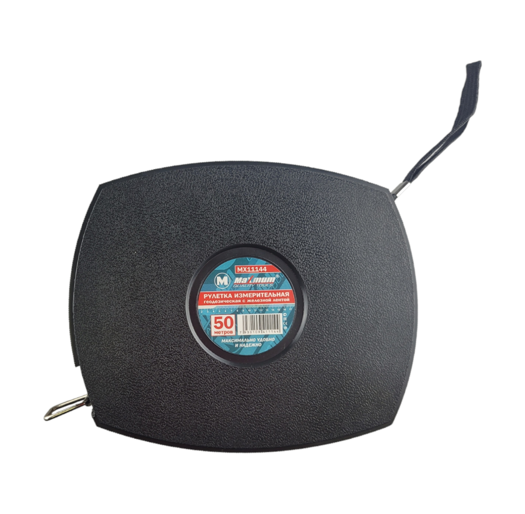 Рулетка 50 метров с железной лентой от Maximum – это надёжная конструкция, которая выполнена в прочном пластиковом корпусе с резиновым элементом, предохраняющим его при падении.