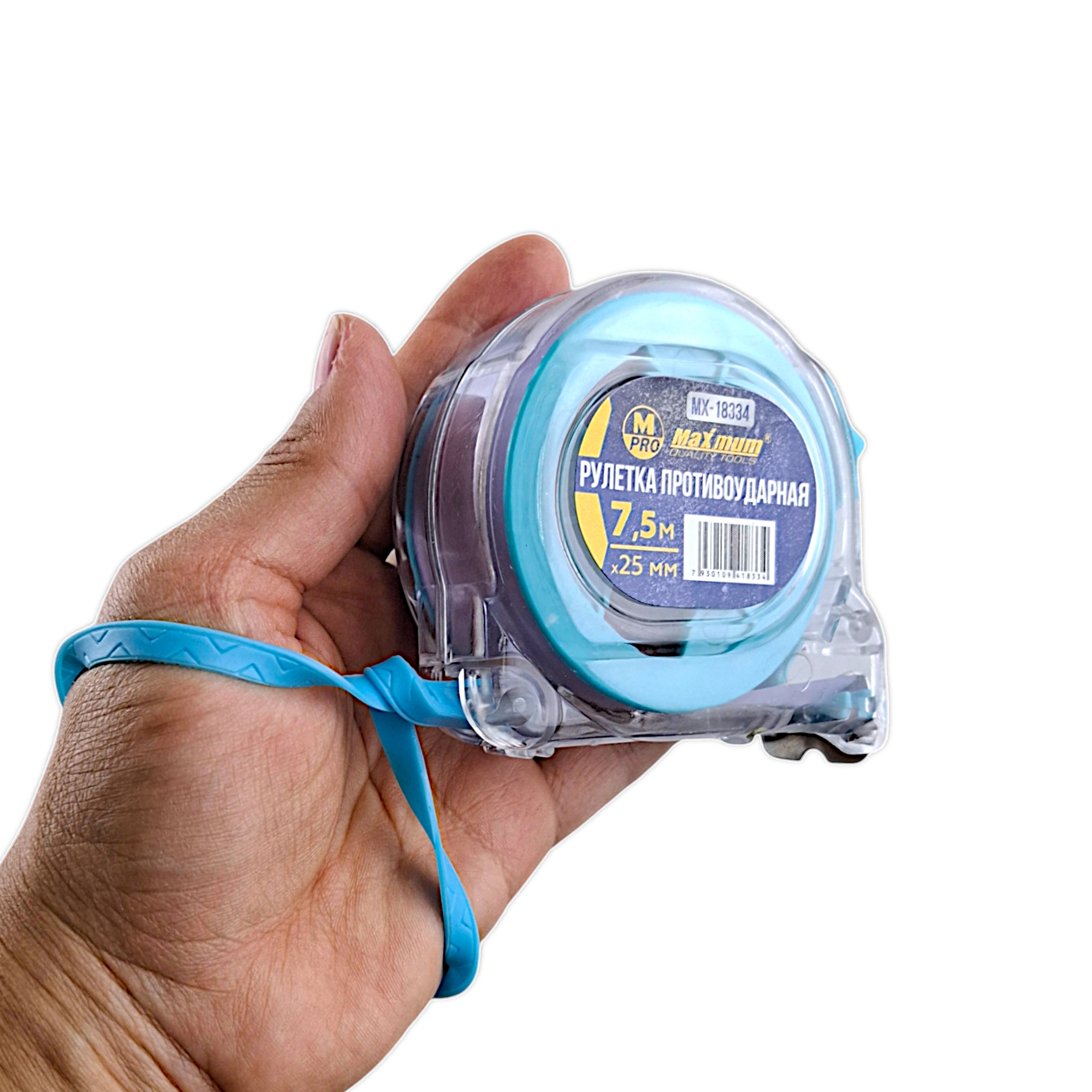 Рулетка 7.5 м с поясным зажимом противоударная от "Maximum" оборудована широкой стальной лентой 25 мм.