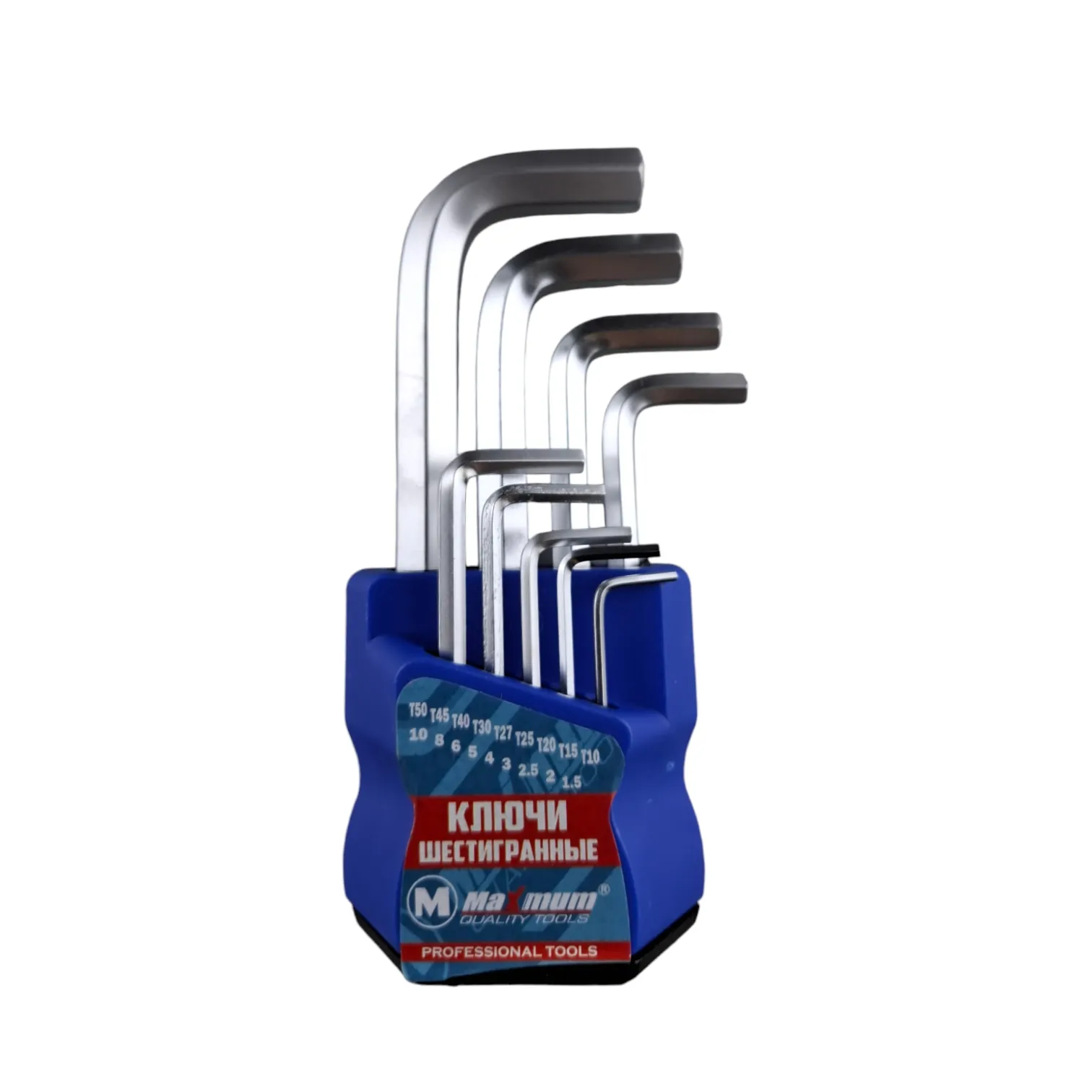 Набор состоит из 9-ти торцевых шестигранных Г-образных ключей с шаровидным наконечником 1,5-10 мм. Ключи длиной 120 мм предназначены для откручивания и закручивания крепежных изделий, имеющих в головке внутренний шестигранник.