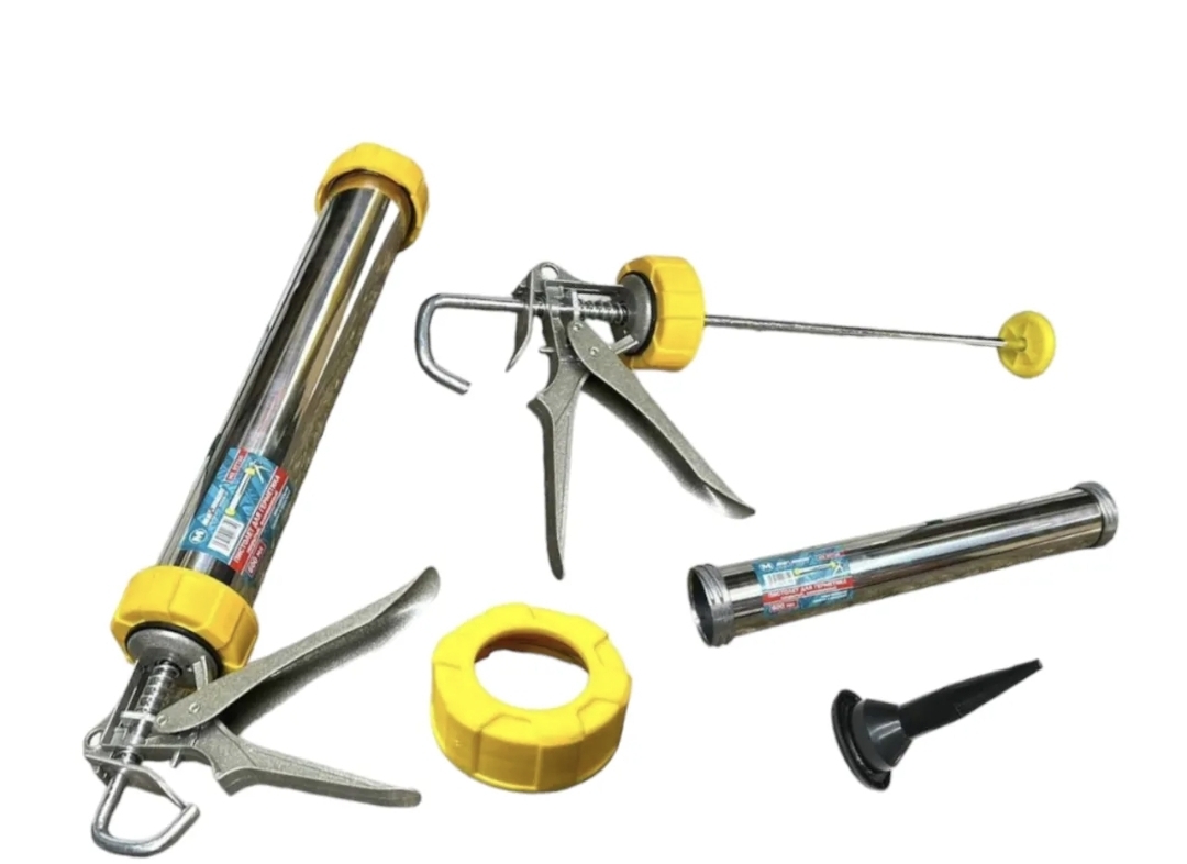 Закрытый профессиональный пистолет для герметика применяется для плавного выдавливания герметика из тубы при нанесении на поверхность при герметизации различных швов и отверстий. Имеет закрытый цилиндрический корпус, выполненный из алюминия и используется для заполнения пустот и щелей герметизирующими материалами.