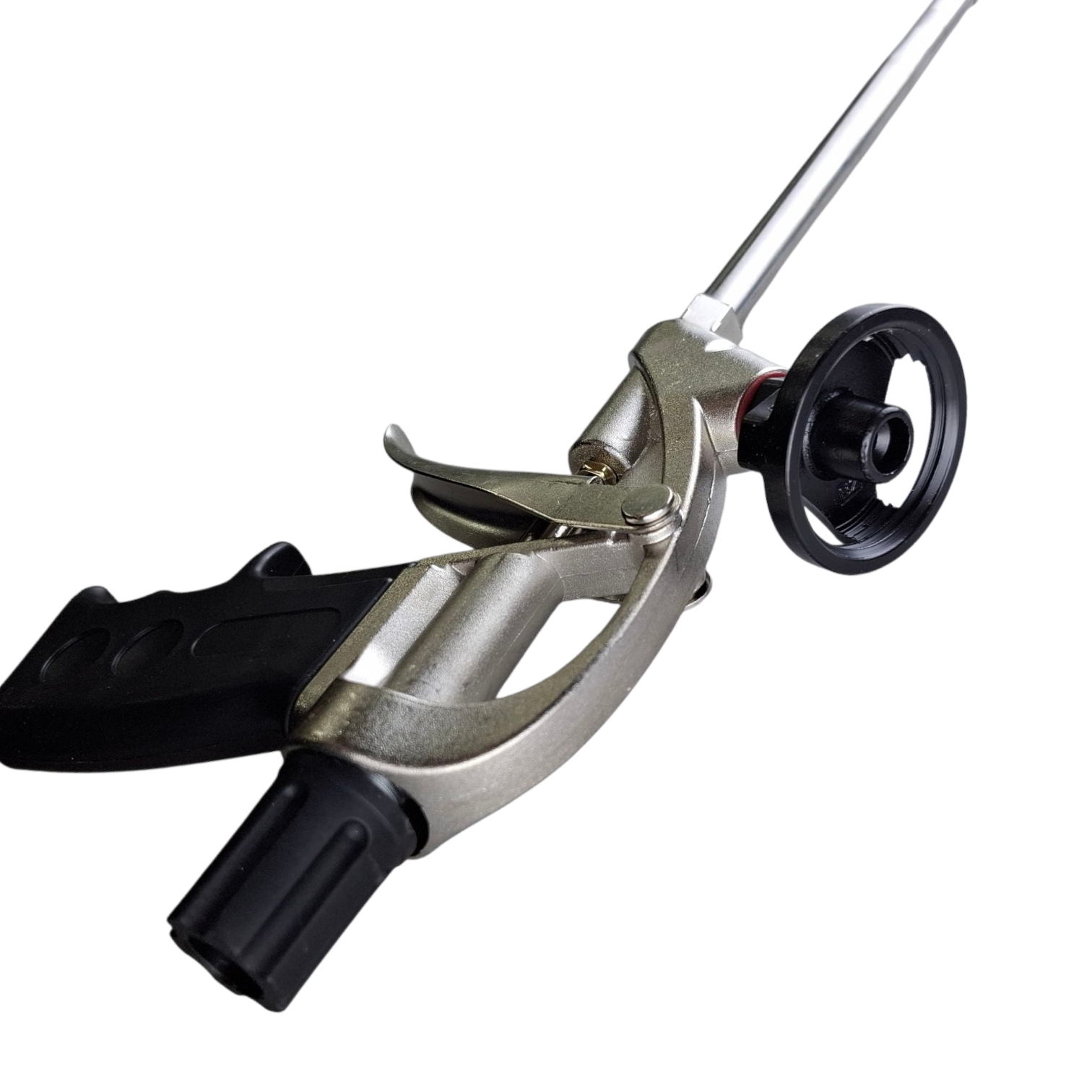 Цельнометаллический регулировочный винт оборудован удобной пластиковой ручкой, которая позволяет регулировать напор и наносить пену аккуратно и точно.