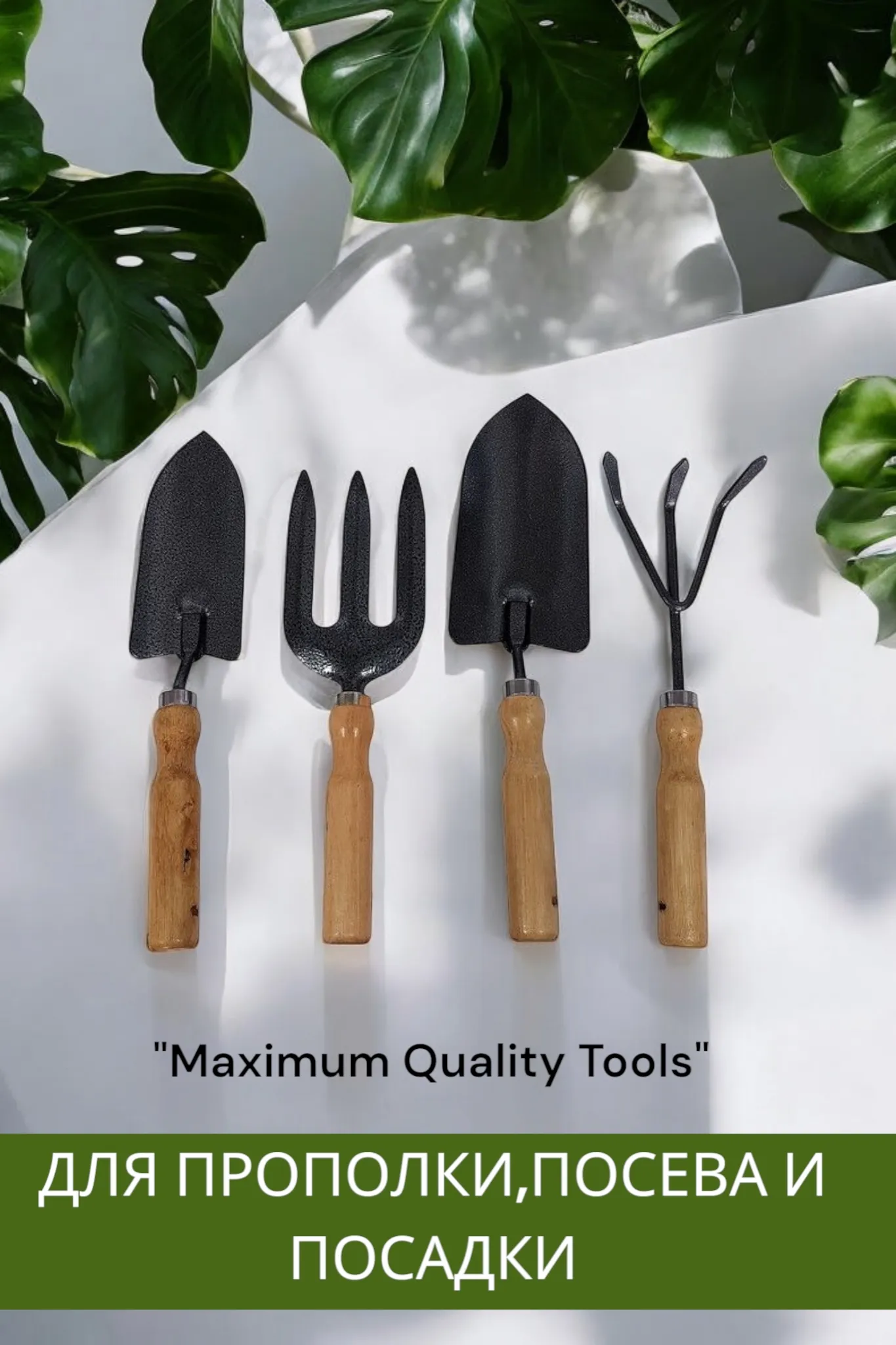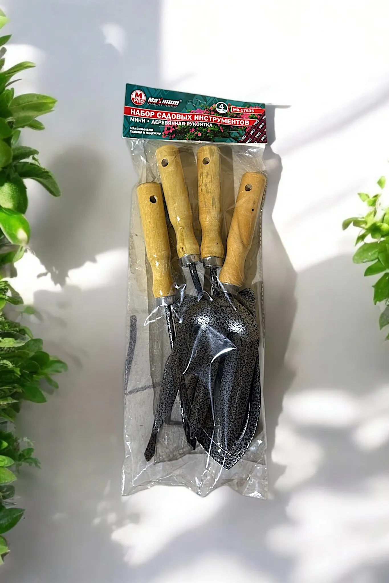 · ПОЛНЫЙ КОМПЛЕКТ ДЛЯ УХОДА: В набор входят 4 основных мини-инструмента: совок, грабельки, рыхлитель и лопатка. Все для посадки, пересадки, рыхления и прополки.