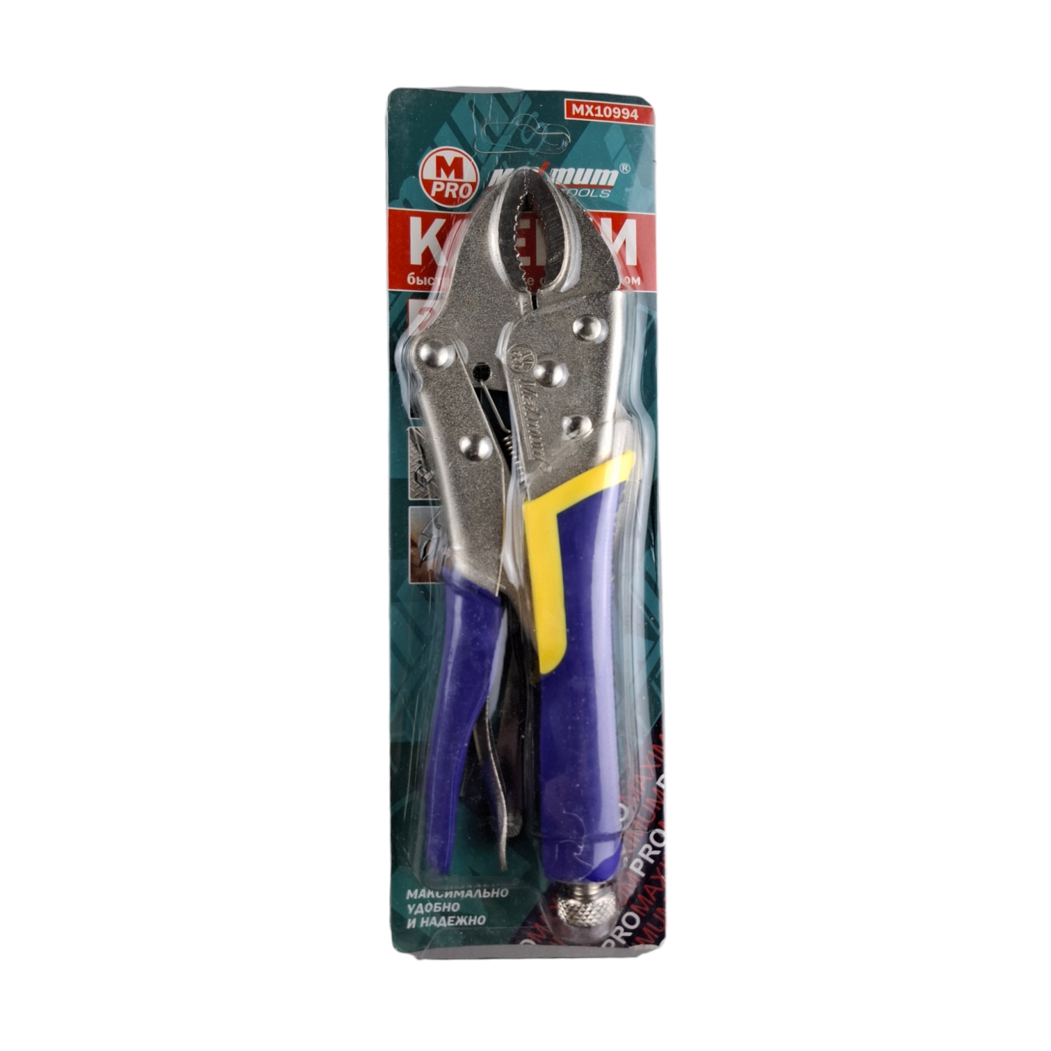 Зажимные универсальные клещи 250 мм от "Maximum Quality Tools" или пассатижи с фиксатором оснащены изогнутыми губками, обеспечивающими захват и удержание деталей различной формы. Удобный механизм "третья рука" гарантирует высокую силу сжатия и быстрый сброс. Для исключения проскальзывания руки во время работы предусмотрены прорезиненные мягкие накладки на рукоятках.