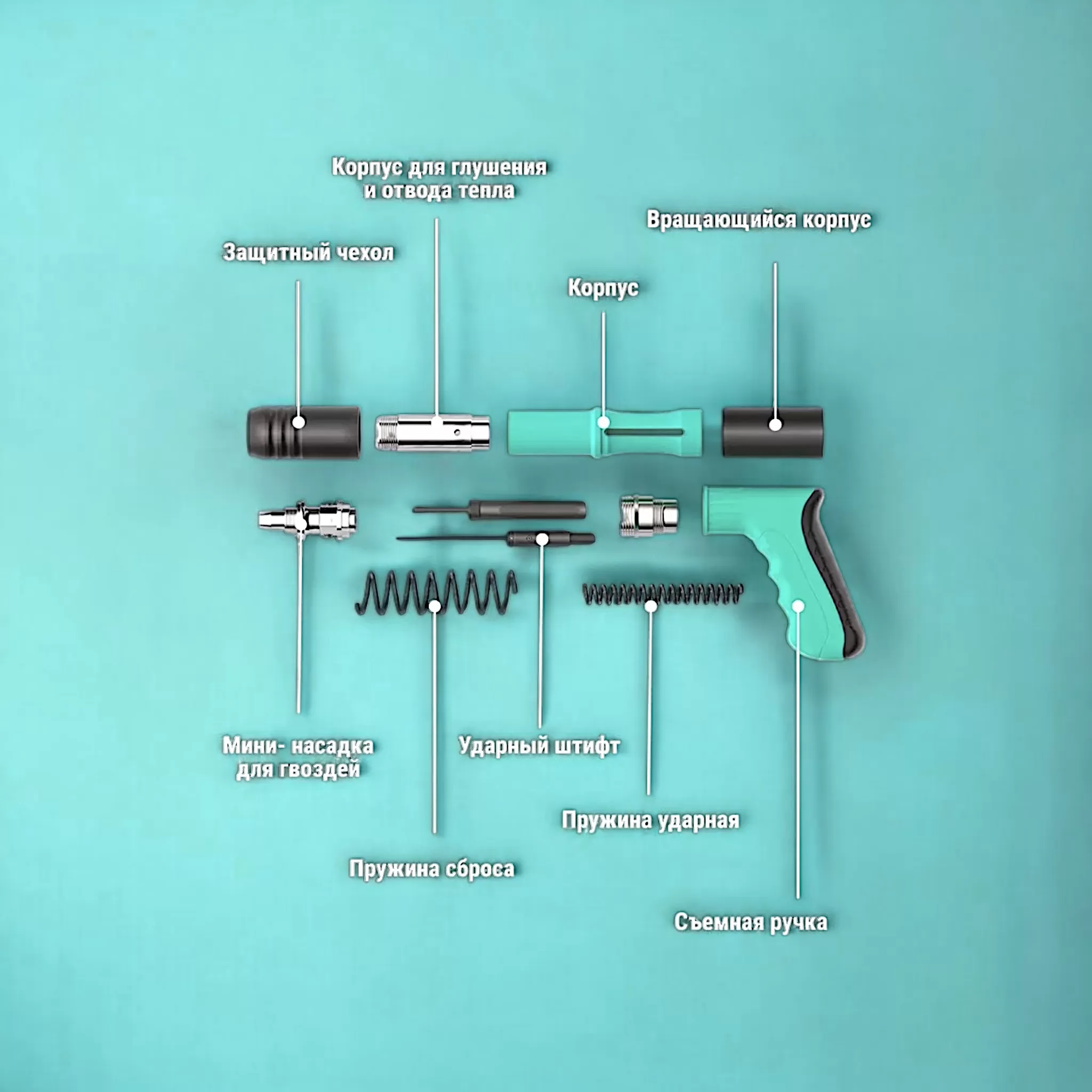 Многофункциональный пороховой мини-пистолет предназначен для крепления гвоздей в стену без сверления. Инструмент с легкостью пробивает бетон, цемент, кирпич, металл и плотные деревянные панели.