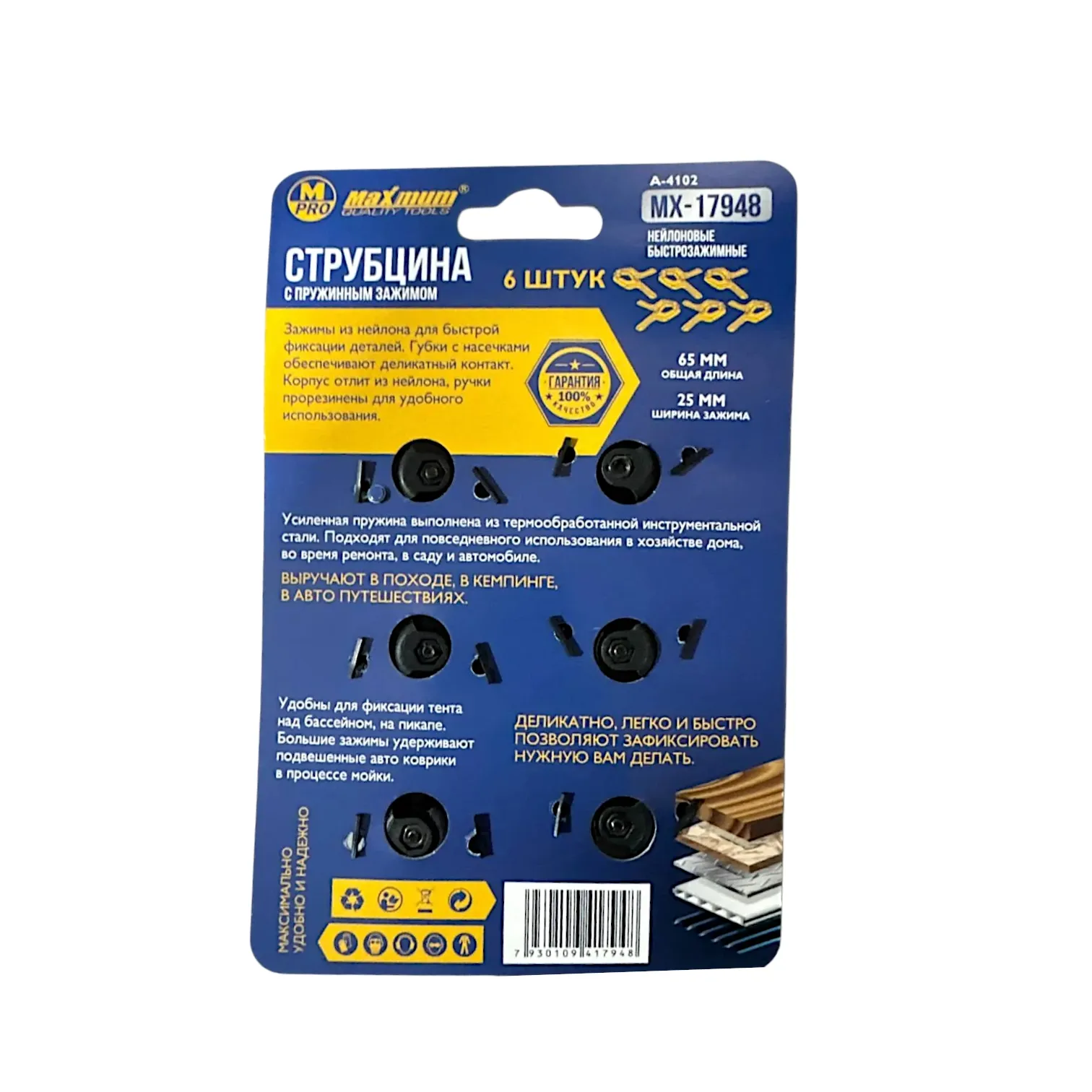 Набор пружинных струбцин 6 шт. от "Maximum" PRO (Максимум) предназначен для надежной фиксации деталей. Нейлоновый корпус с усиленной конструкцией. Общая длина 65 мм, ширина зажима 25 мм.