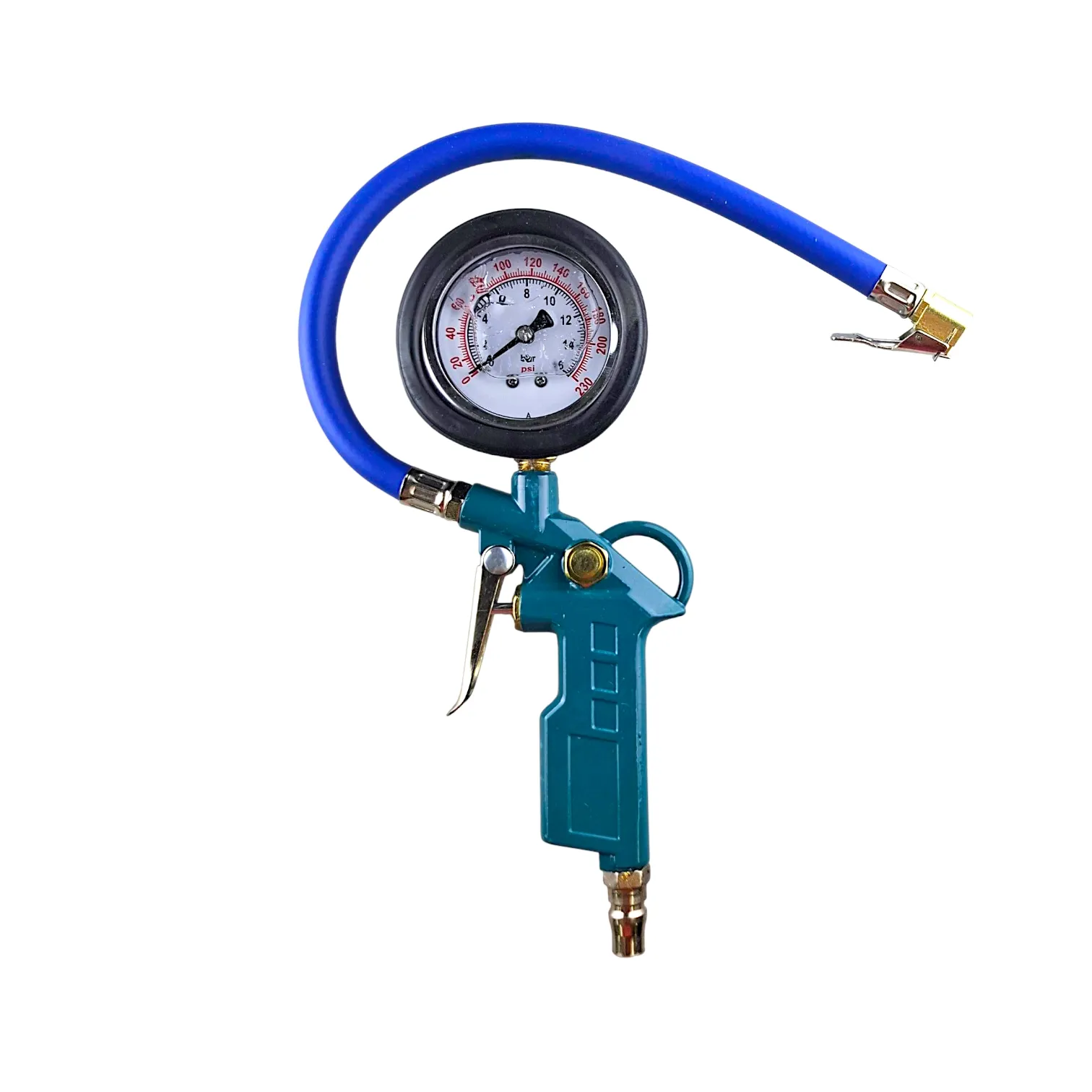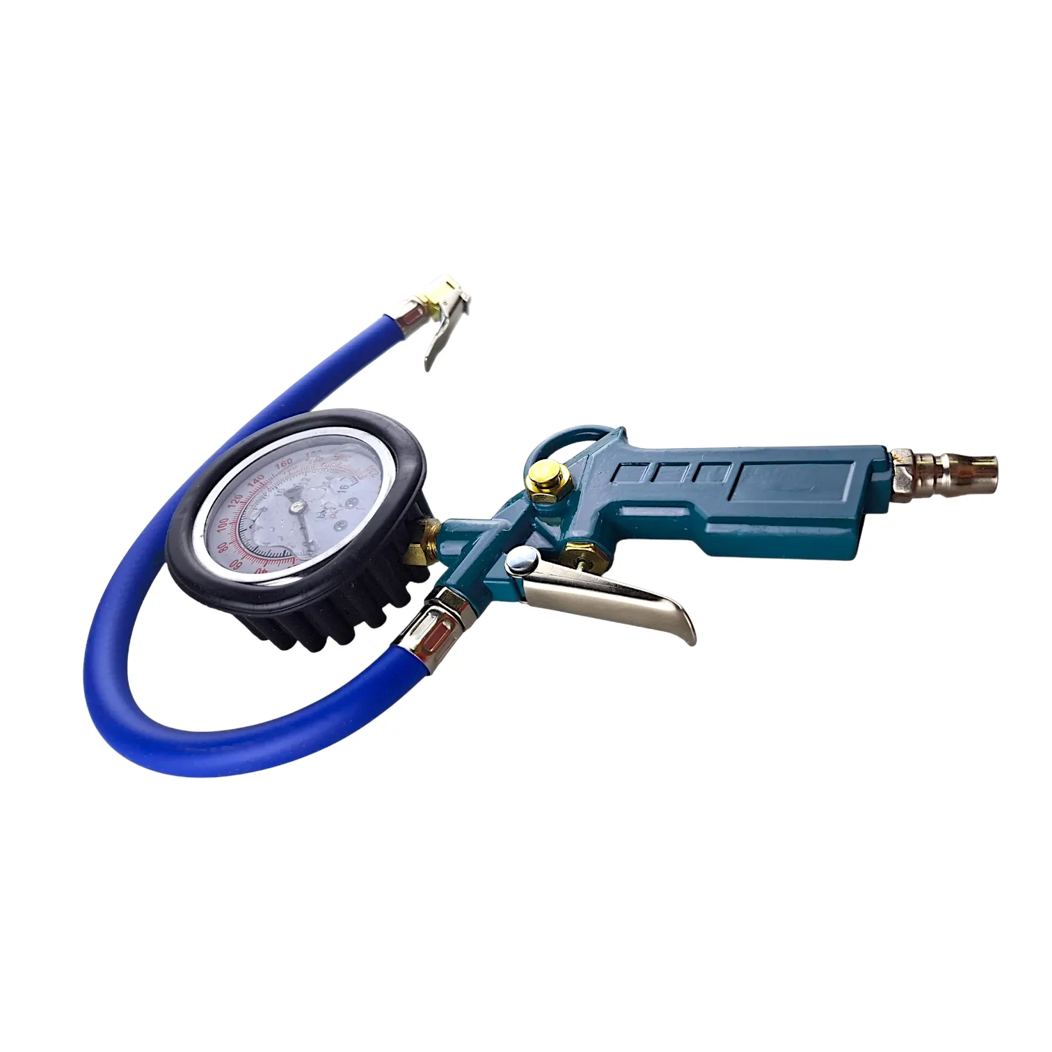 Пневматический пистолет для подкачки шин с манометром - это профессиональный инструмент, предназначенный для увеличения и регулировки давления в шинах в автосервисах и шиномонтажных мастерских.
