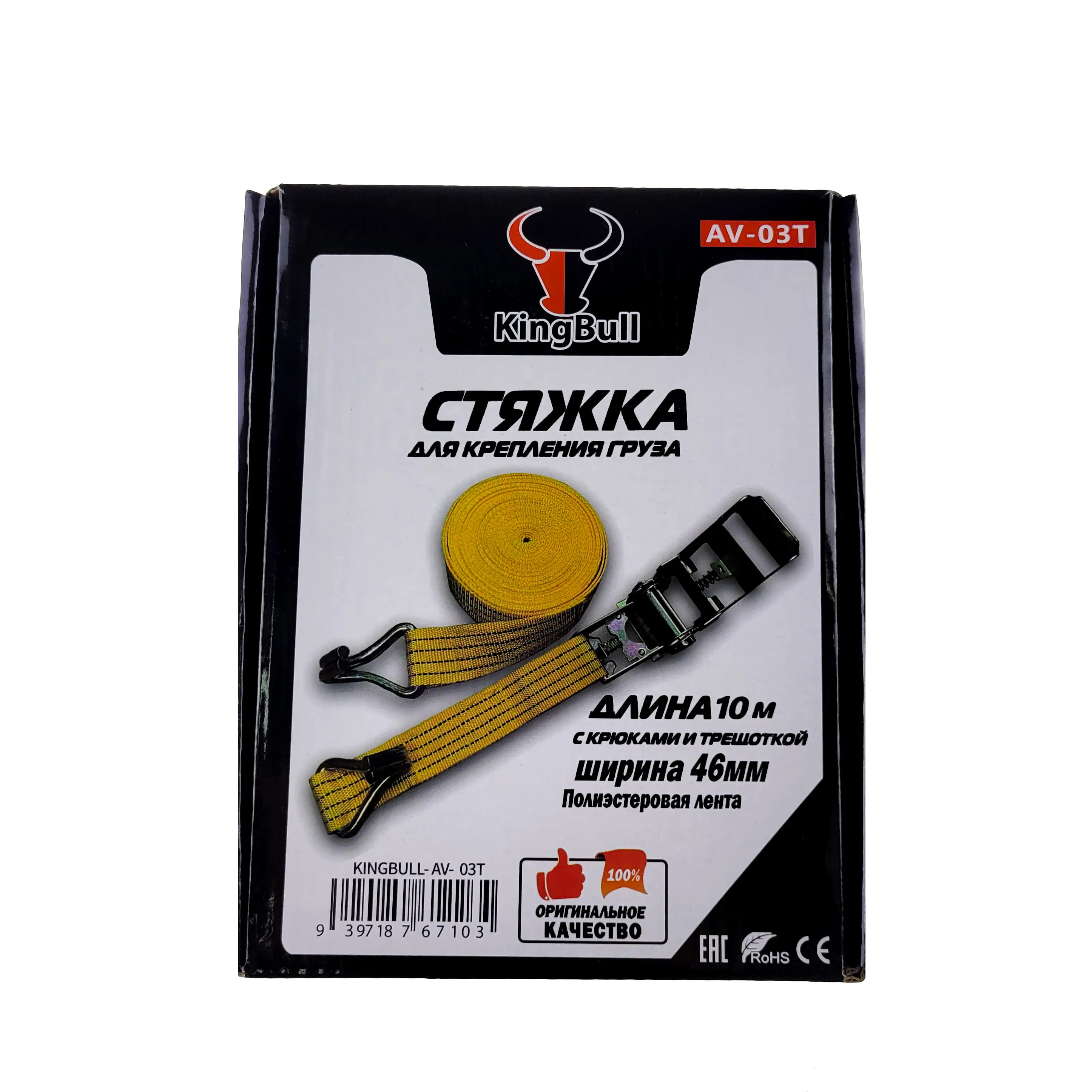 Ремень стяжной 3 тонны 10 метров длиной оснащен храповым механизмом, который позволяет использовать весь ресурс изделия при закреплении груза. Данная модель оснащена регулировкой длины. Полиэстеровая лента 46 мм шириной имеет специальную двойную прошивку, которая повышает прочность и долговечность изделия. Храповик и специальные крюки стяжки для груза выполнены из оцинкованной стали.