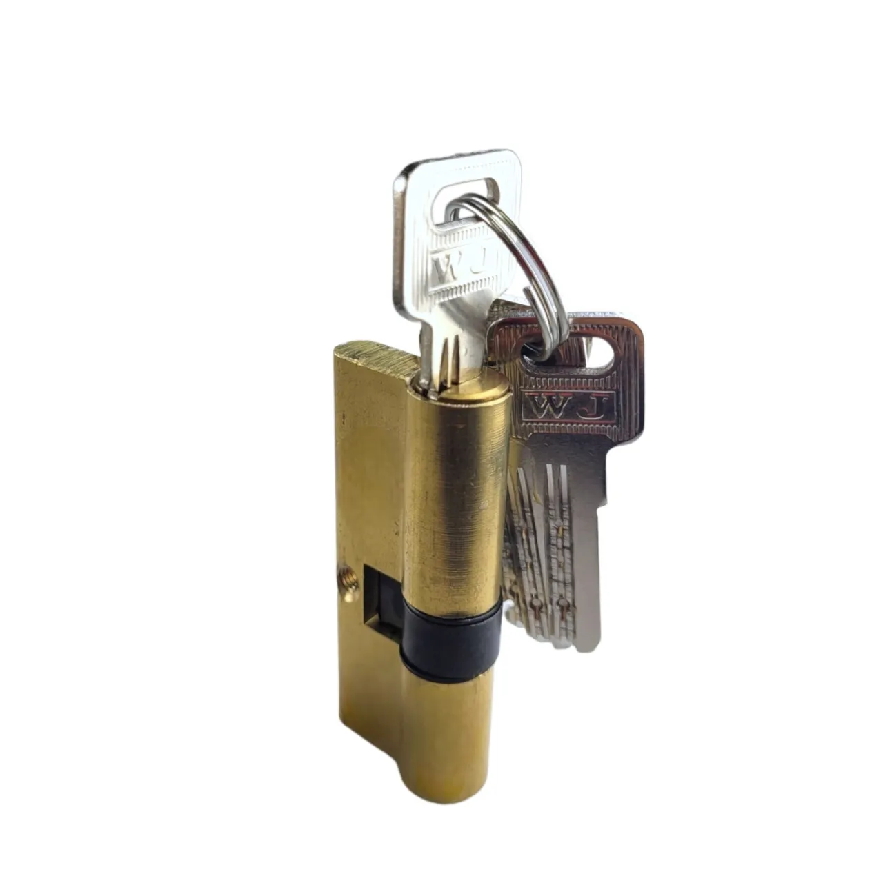 Предлагаем оптом от hozmsk.ru цилиндровые механизмы со смещением длиной 70 мм с 4 перфорированными ключами в комплекте, исполнение ключ/ключ. Система антибампинг предусматривает уникальное расположение штифтов. При контакте ключа с цилиндровым механизмом задействованы две поверхности сканирования. Верхняя часть сканирует волнистую линию, благодаря которой подобрать дубликат ключа практически невозможно. Нижняя часть считывает перфорацию ключа. Материал корпуса цилиндра: латунь. Цвет: золото матовое.
