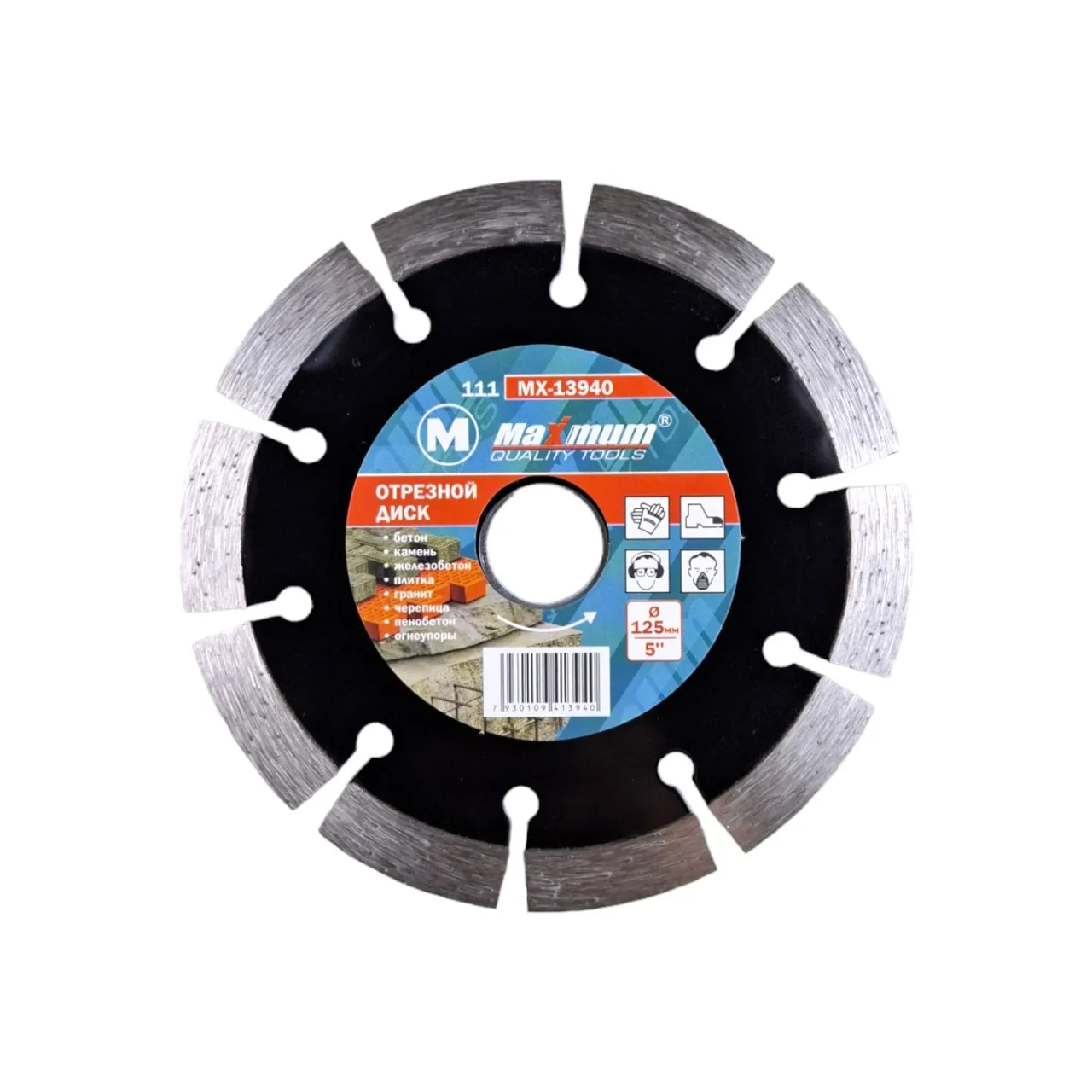 Универсальный алмазный диск 5" от "MAXIMUM QUALITY TOOLS" из профессиональной серии выполнен по технологии горячего спрессования и имеет рифлёные сегменты режущей кромки и перфорацию, которые способствуют дополнительному охлаждению диска. Назначение: армированный бетон, железобетон, бетон, бордюрный камень, натуральный камень, тротуарная плитка, кирпич.