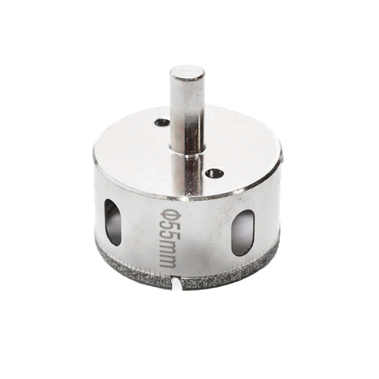 Коронка кольцевая алмазная по керамической плитке и стеклу 55 мм «Maximum» - профессиональный инструмент высокого качества, который выполнен из высокоуглеродистой нержавеющей стали с нанесением искусственной алмазной крошки.