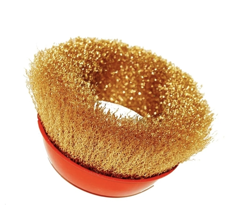 Щетка латунированная для УШМ предназначена для зачистки изделий, удаления ржавчины и грязи с металлических поверхностей. Гайка М14 предназначена для шлифовальных и отрезных машин. Стальная латунированная волнистая проволока рассчитана на максимальное количество оборотов до 3750 RPM, не подвержена коррозии и окислению.