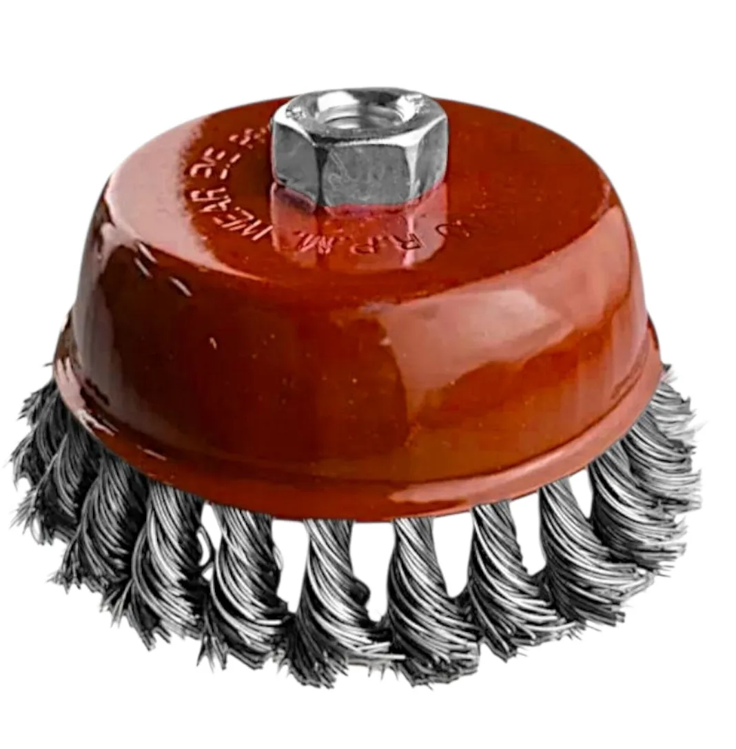 Корщетка на болгарку 125 мм применяется для очистки поверхностей от краски и ржавчины, шлифовки, полирования, зачистки от лака на деревянных и металлических поверхностях. Тип крепления - М14, максимальное количество оборотов — 3750.