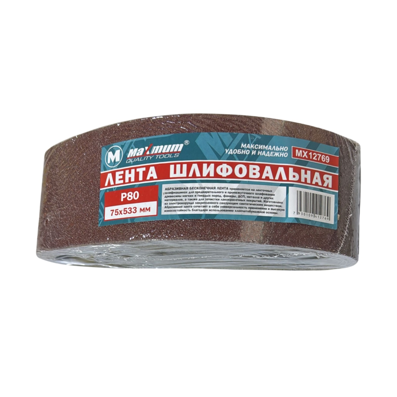 Абразивная бесконечная лента Р 80 75x533 мм применяется на ленточных шлифмашинах для предварительного и промежуточного шлифования древесины мягких и твердых пород, фанеры, ДСП, металла и других материалов, а также для зачистки лакокрасочных покрытий. Изготовлена из электрокорунда закрепленного связующем синтетическим веществом. Абразивная лента P 80 сочетает в себе универсальность применения и высокую износостойкость благодаря использованию хлопчатобумажной основы.