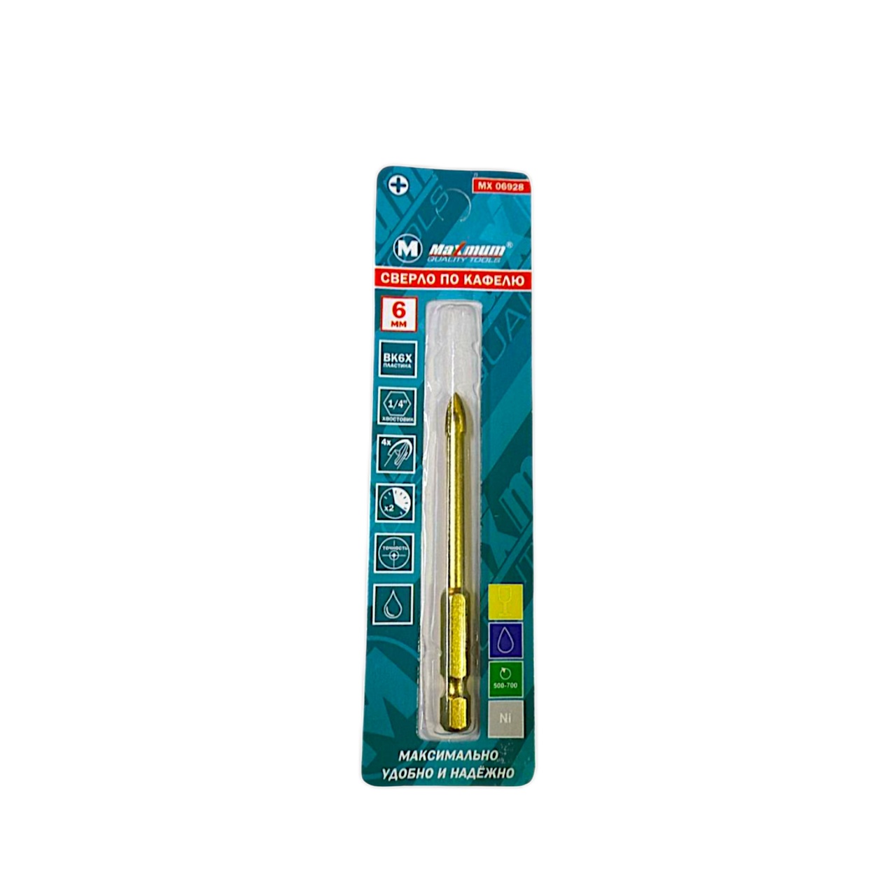 Сверло диаметром 6 мм с никелевым покрытием подходит для любого типа керамики и стекла. Наконечник с четырьмя режущими лезвиями обеспечивает максимальную производительность и точность в работе.