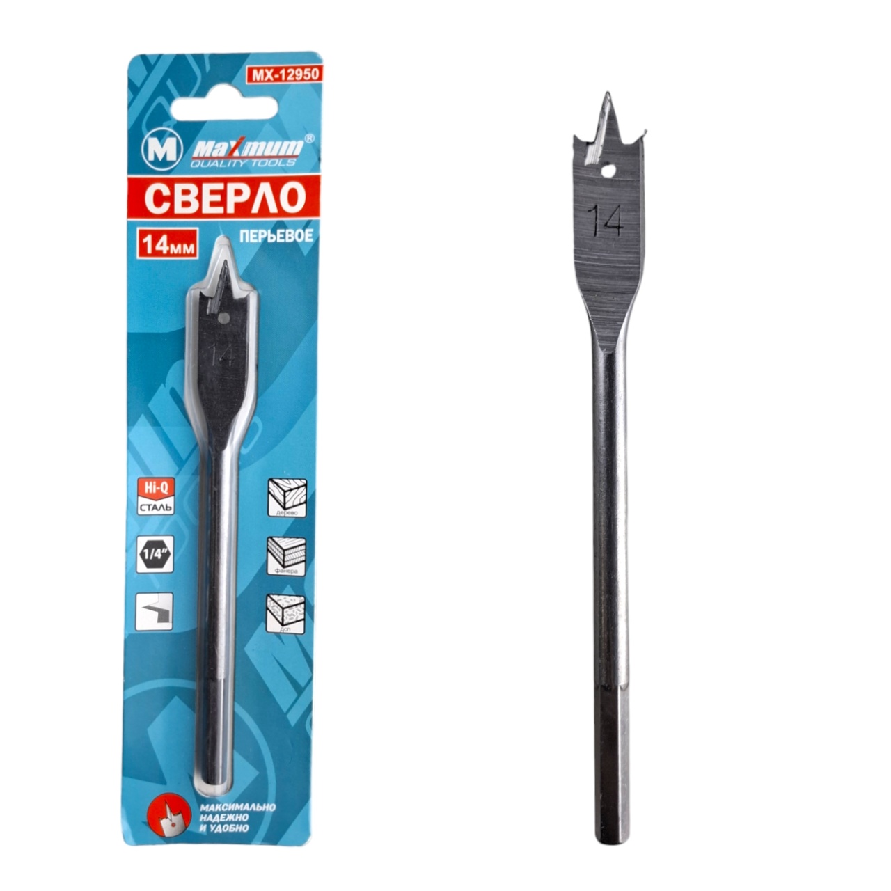 Сверло перьевое Maximum произведено из качественной инструментальной стали и предназначено для работ по дереву. Особая форма рабочей части и специальная заточка позволяют сверлить углубления с гладким краем, без сколов и трещин. Компенсационное отверстие на сверле предотвращает деформацию наконечника при нагреве во время работы.