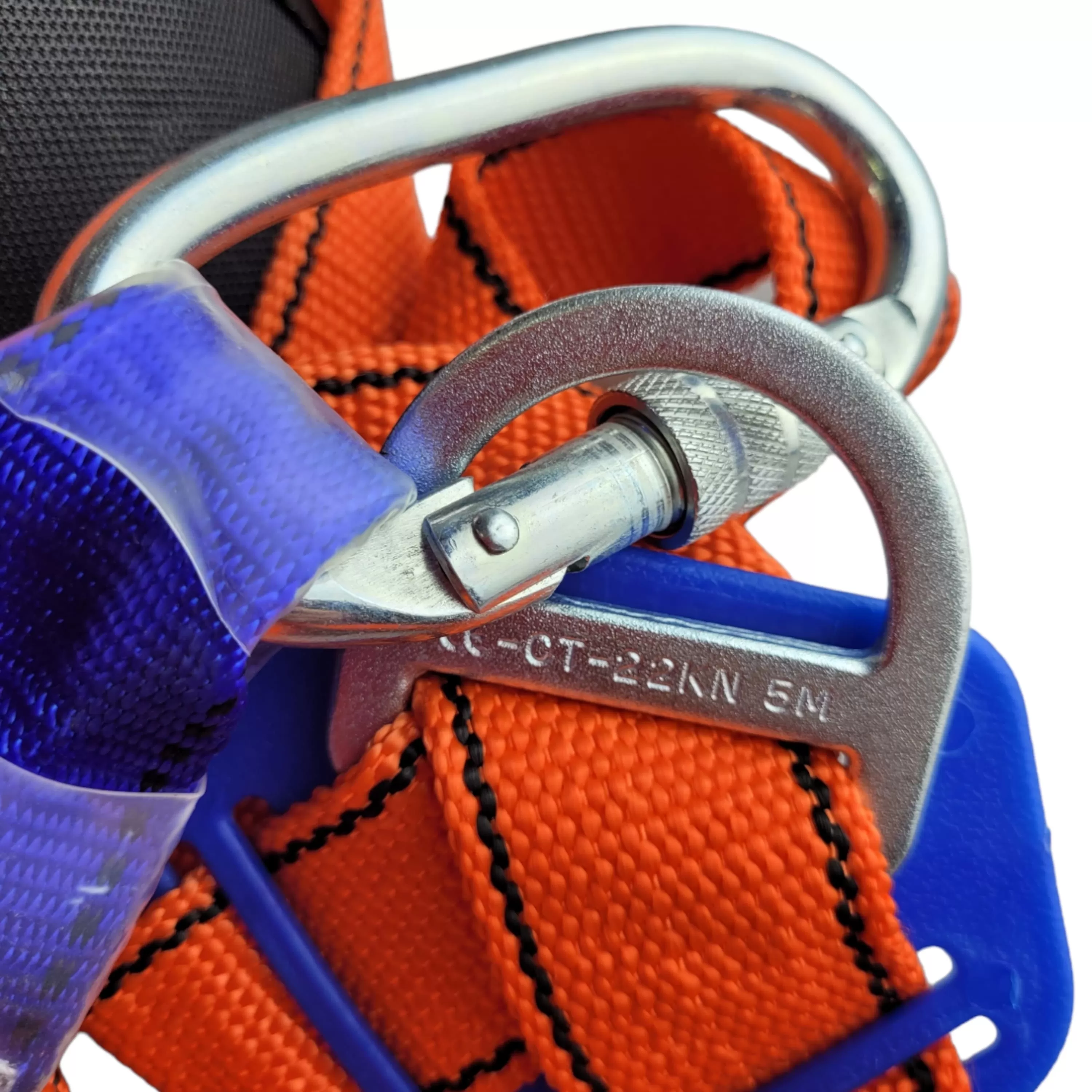 Полная привязь (обвязка) с быстроразьемными пряжками + строп гарантируют безопасность на высотных работах.